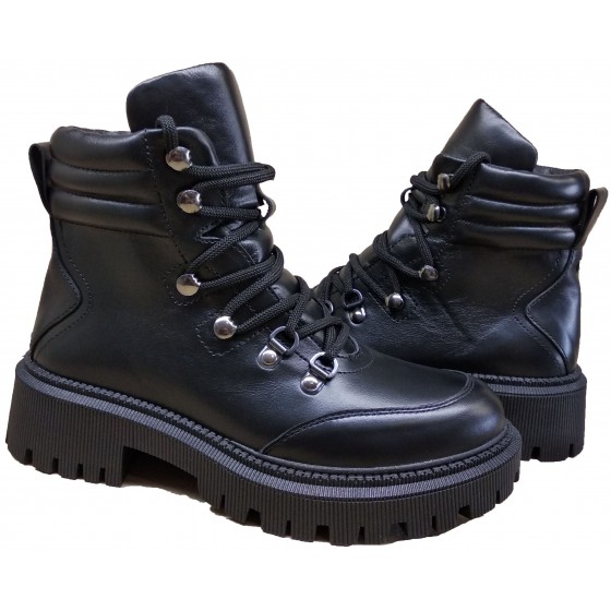 Черевики виконані з натуральної лицьової шкіри чорного кольору, всередині хутро, можна байка, підошва полегшена гума, на шнурку