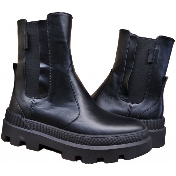 Черевик жіночий зимовий, виконаний з натуральної лицьової шкіри чорного кольору, внутрішня підкладка хутро, знімна устілка, полегшена гумова підошва, метод застібки гумка плюс змійка