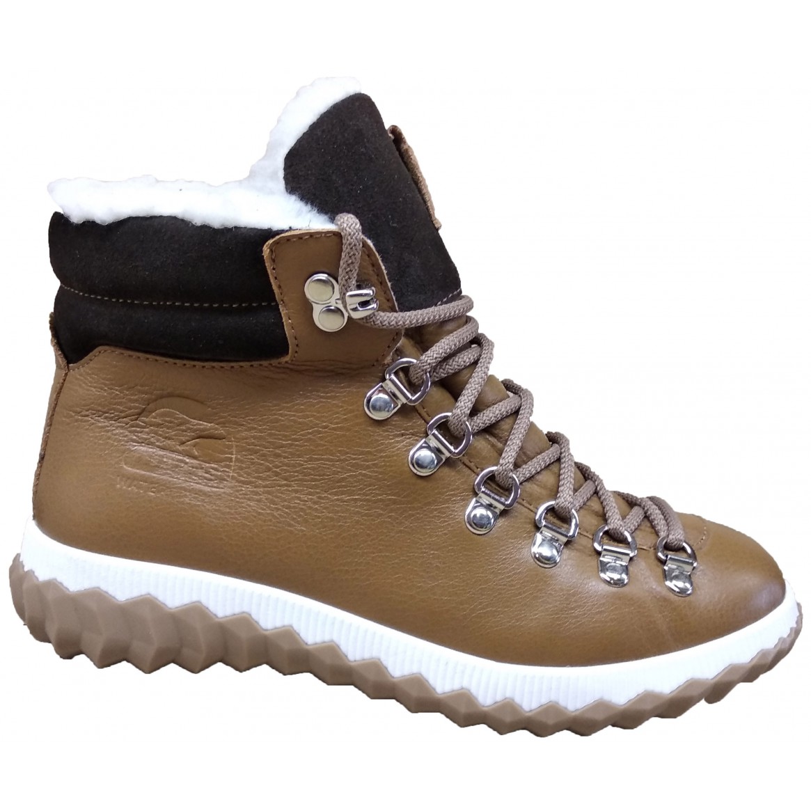 Черевик жіночий зима, виготовлений з натуральної шкіри, колір карамель, підкладка хутро, підошва полегшена гума, на шнурку, декорований бічним кліше,