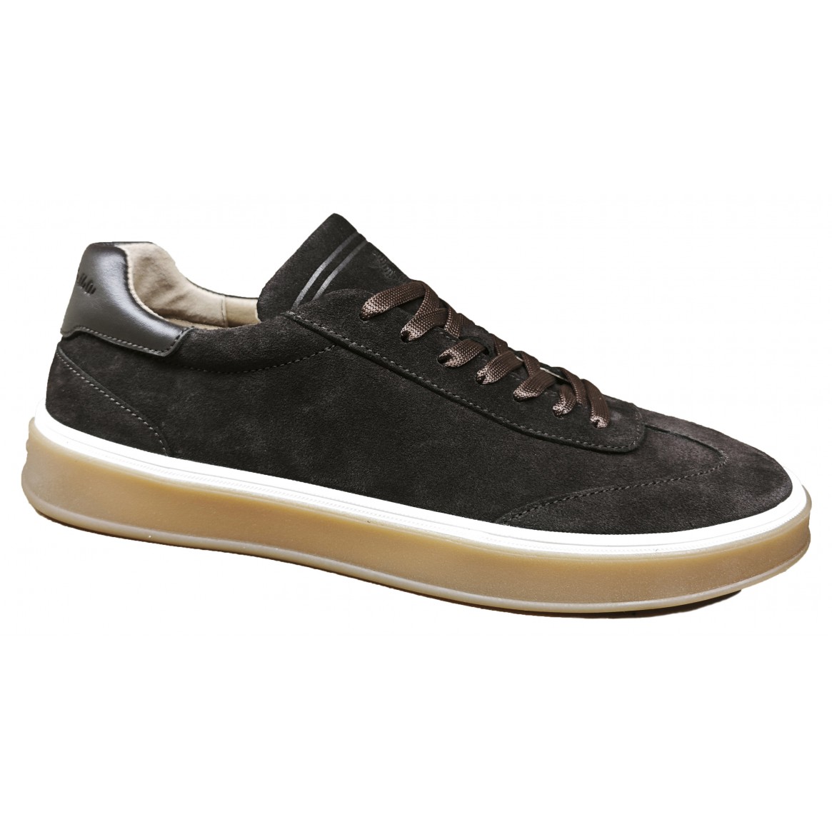 Кросівки виготовлені з натуральної замші коричневого кольору, всередині стоїть дихаюча підкладка, гумова підошва з білою губою надає особливий стиль цієї моделі, на шнурку, вкладна ортопедична устілка.