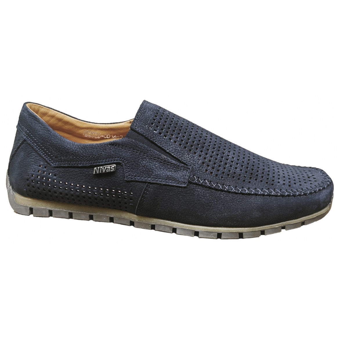 Мокасин чоловічий шкіряний перфорація - A-16 nubuck blue perforation