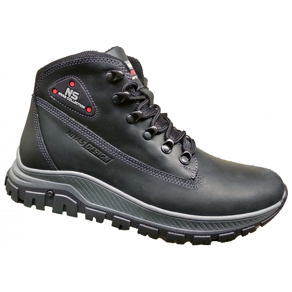 Черевики зимові чоловічі шкіра чорний крейзи - N-84 Crazy Black