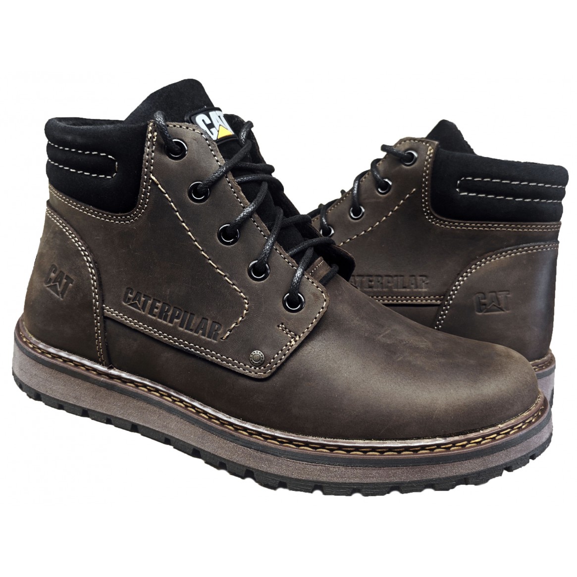 Черевик виготовлений з натуральної шкіри, темно-коричневий крейзі, підошва ТЕП гума, прошита, не ковзає, не промерзає, на шнурку, всередині стоїть щільне натуральне хутро на штучній основі (набивний), гарний вибір для повсякденного носіння,