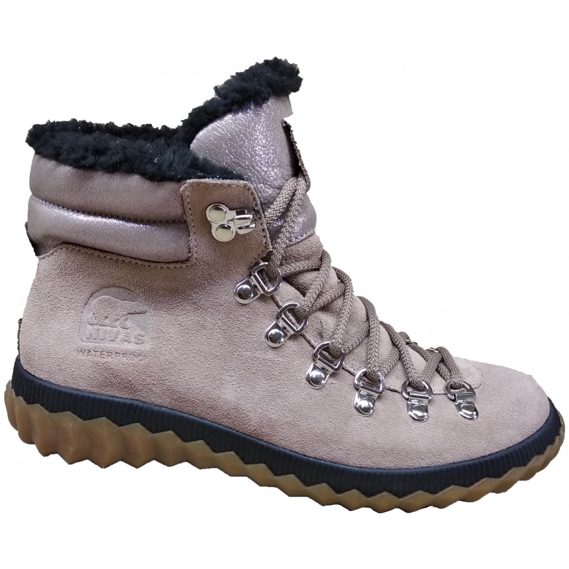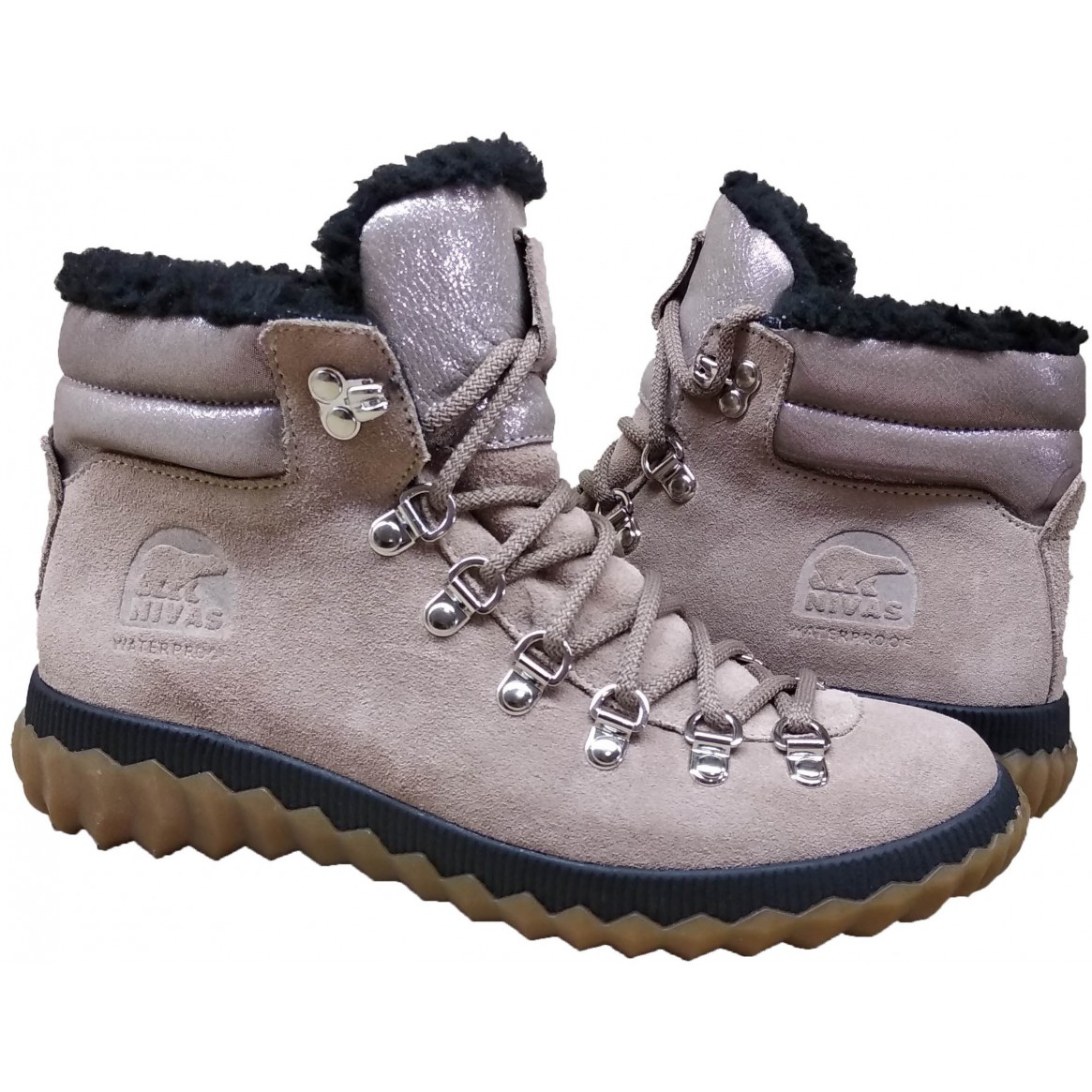 Черевик жіночий зима, виготовлений з натурального велюру, колір капучино, підкладка хутро, підошва полегшена гума, на шнурку, декорований бічним кліше,