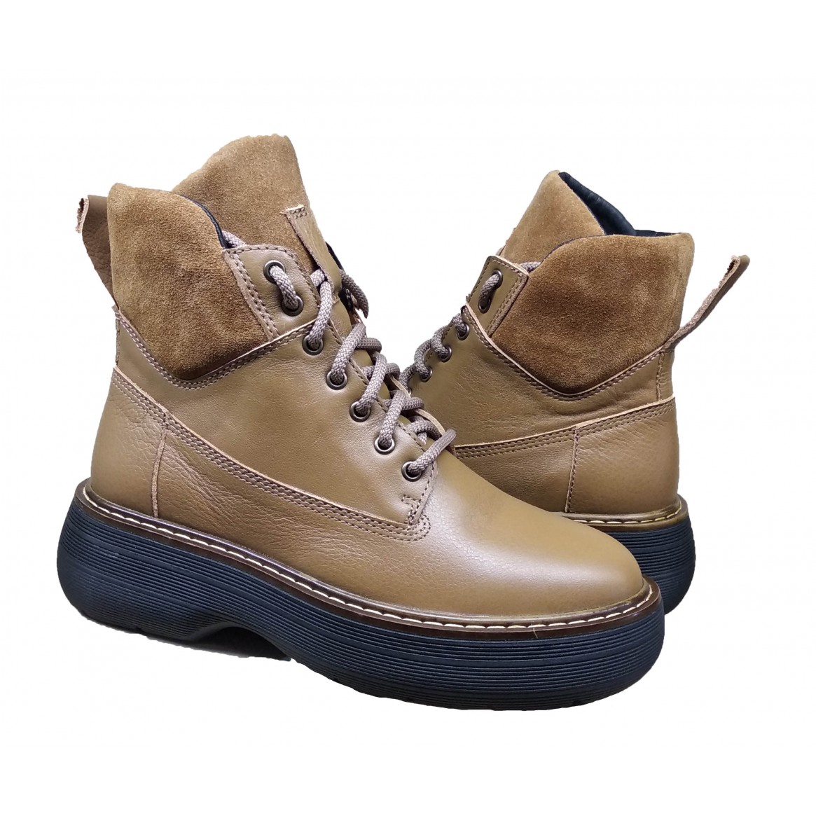 Черевик виготовлений з натуральної лицьової шкіри, чорного кольору, підкладка хутра баранчиків, підошва гумова, чорна, з прошитым рантом, метод застібки шнурок + блискавка, вкладна устілка