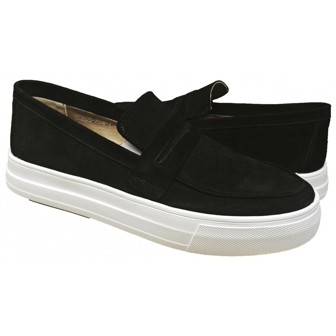 Модель виготовлена з натурального велюру чорного кольору, підошва легка біла ЕВА, підкладка ІК дихаюча, всередині формована ортопедична устілка,