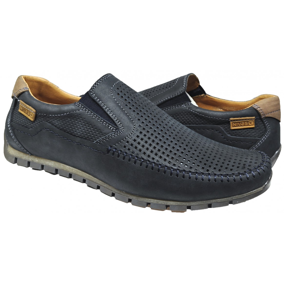 Мокасини чоловічі шкіряні перфорація - 2402 blue perforation
