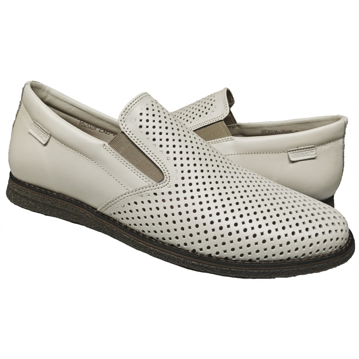 Мокасины мужские кожаные - 2505, perforated front, beige